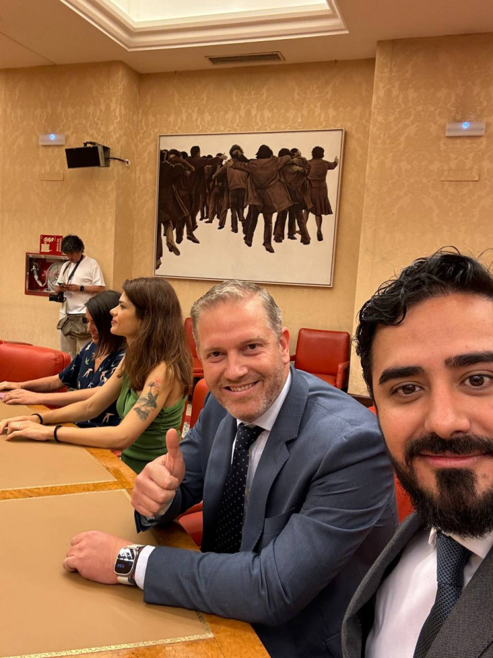 Sin embargo, el líder de SALF ha revelado cómo está siendo esa reunión con la Junta Electoral Central mostrando un selfie en el que se ve a Irene Montero, exministra y eurodiputada de Podemos, sentada a unos pocos asientos