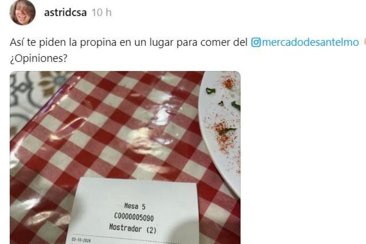 Otros, en cambio, consideran que el detalle no es bonito. "Calculo que se dan el lujo de pedir la propina de ese modo por la ubicación del lugar, un turista lo paga seguro. 🤷🏻♀️ Cualquiera, encima sin factura, todo mal", dice una usuaria.