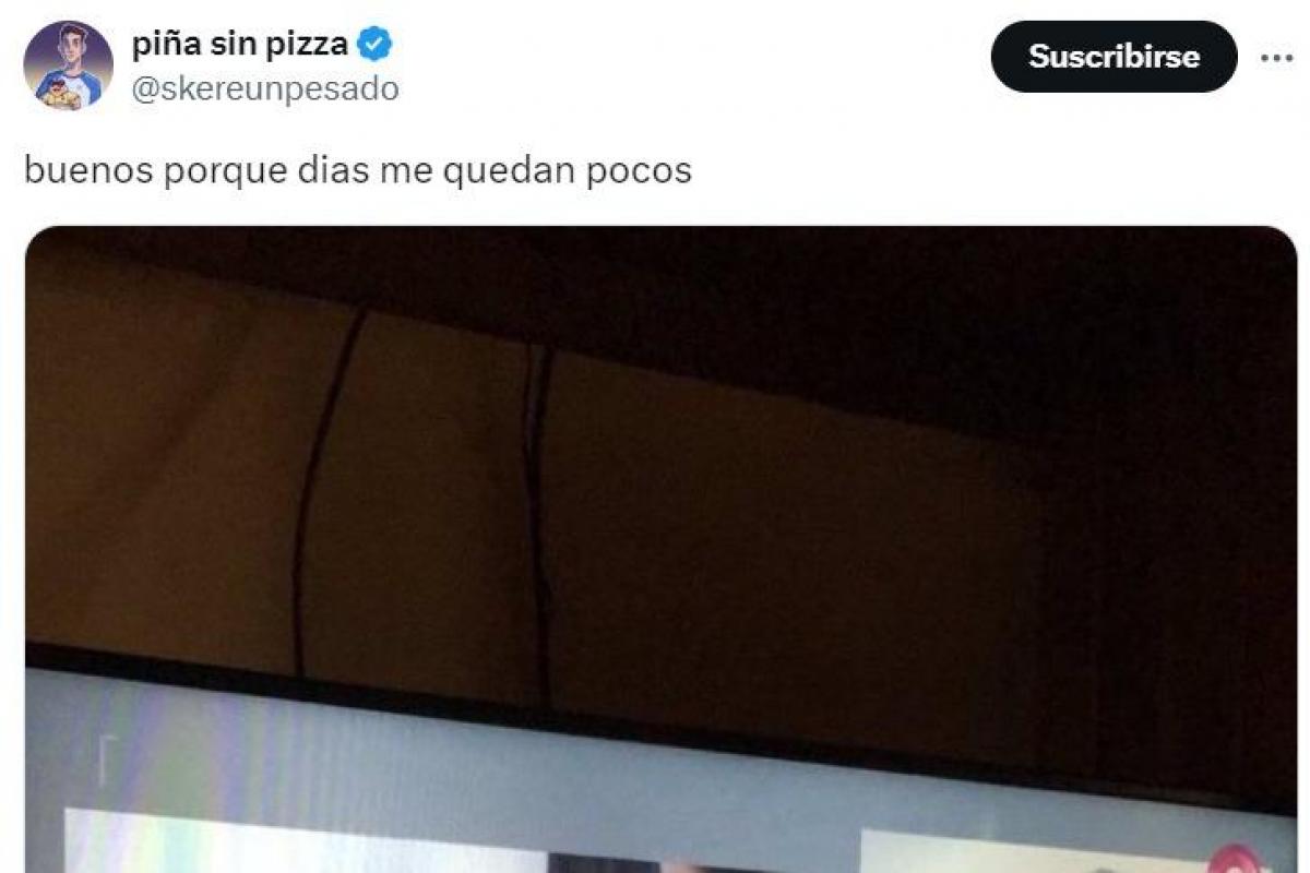 En concreto, el tuitero ha subido una fotografía de una televisión en la que se puede leer un rótulo que reza: "Quejarse muy seguido hace mal a la salud". Y como título de la captura, el creador de contenido ha puesto: "Mis días están contados".