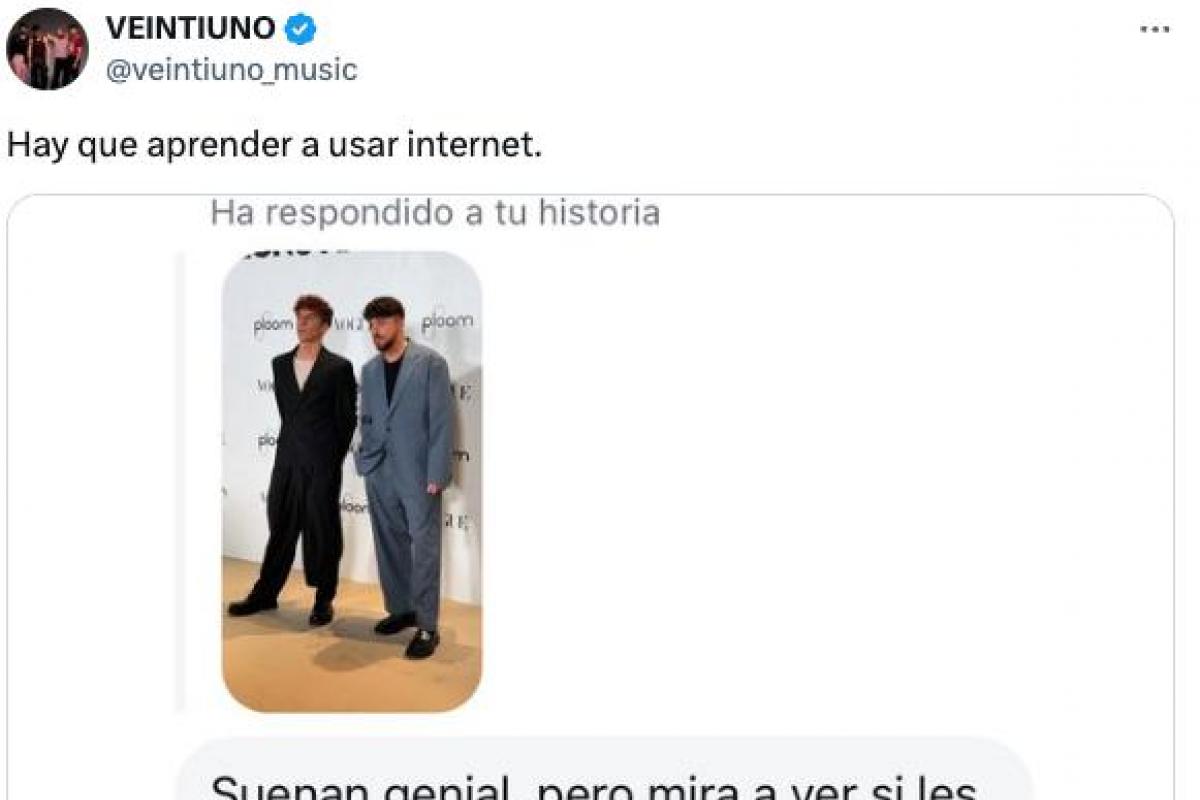 El grupo musical Veintuno, formado por Diego Arroyo, Yago Banet, Pepe Narváez y Rafa Pachón, ha publicado en su perfil oficial de X (@veintiuno_music) una captura de pantalla de un mensaje privado que les envió una persona sin querer, aunque no tanto.