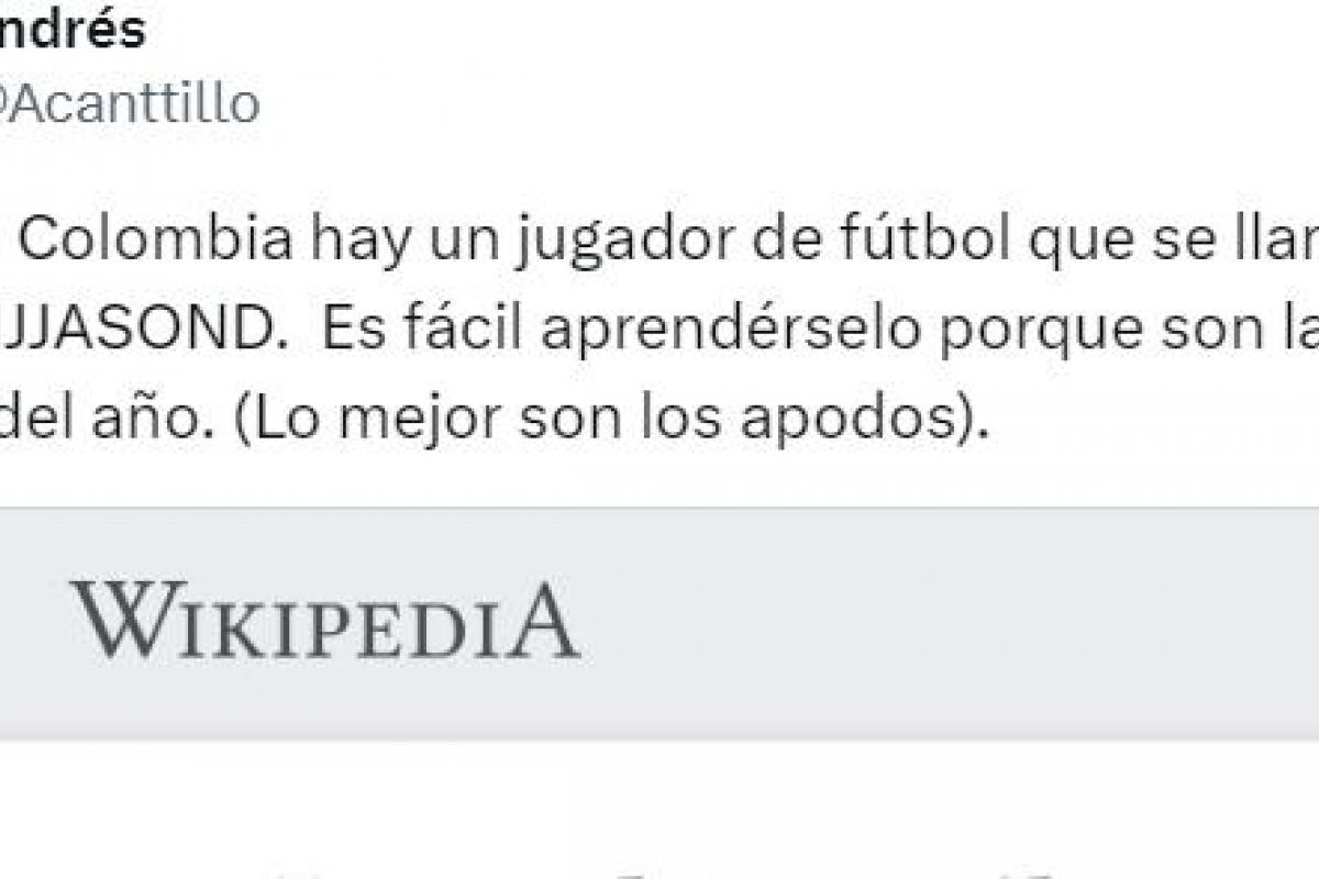 "Aquí en Colombia hay un jugador de fútbol que se llama EFMAMJJASOND. Es fácil aprendérselo porque son las iniciales de los meses del año", ha explicado en la publicación.