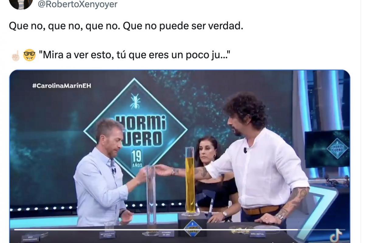 Este miércoles fue a divertirse a El Hormiguero Carolina Marín, cuya lesión en los Juegos Olímpicos de París 2024 cuando acariciaba las medallas dejó al país helado. Después de la entrevista llegó el turno de la ciencia con Marron y fue ahí donde una frase del colaborador ha llegado hasta X (antes Twitter).