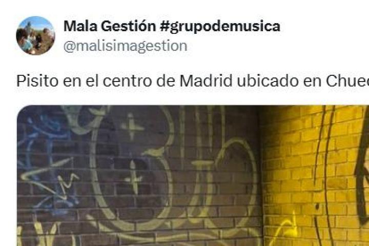 El grupo de música Mala Gestión (@malisimagestion) ha subido a su cuenta de la red social X, anteriormente conocida como Twitter, un divertido tuit con una fotografía a modo de crítica al precio del alquiler en el centro de Madrid.