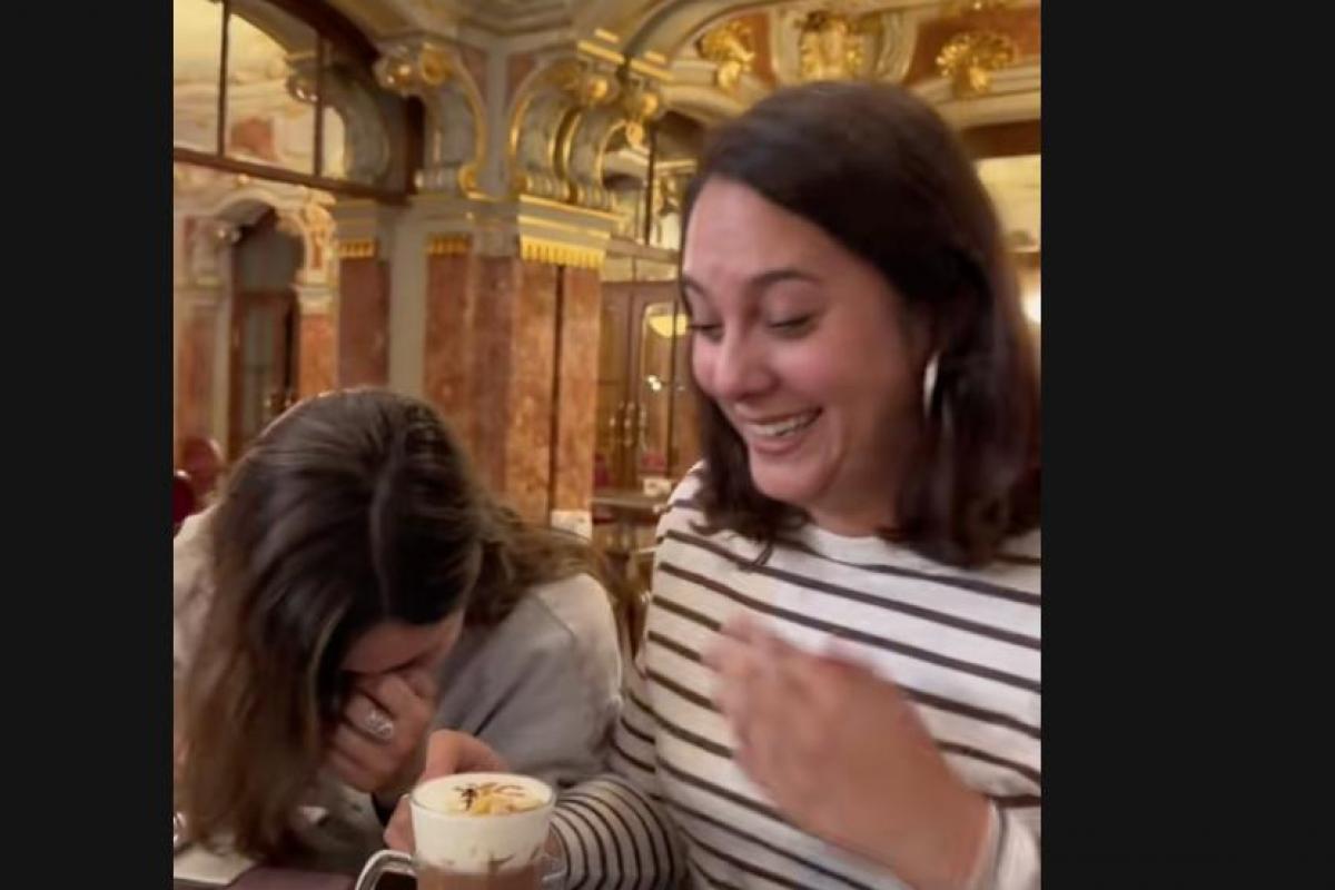 "Uy qué bien vamos a desayunar, es que estoy llorando. Menos mal que nos han puesto un poquito (un vaso de chupito) de agua para pasar la galleta", ha expresado una de las amigas. El café llevaba virutas de oro comestible, por lo que han deducido que el alto precio puede venir de ahí, además de estar en la misma cafetería.