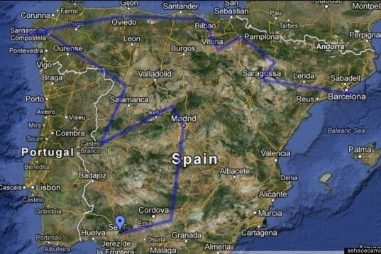 El recorrido, que ha iniciado en Sevilla, ha pasado por ciudades como Córdoba, Madrid, Santiago de Compostela, Oviedo, Bilbao, Pamplona y Zaragoza. Incluso, Rando ha celebrado su cumpleaños en la capital española.