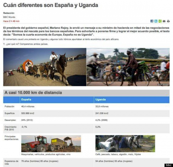 Puedes leer una amplia recopilación de reacciones a la frase en Al Jazeera. La etiqueta UgandaisnotSpain se hizo ayer muy popular.