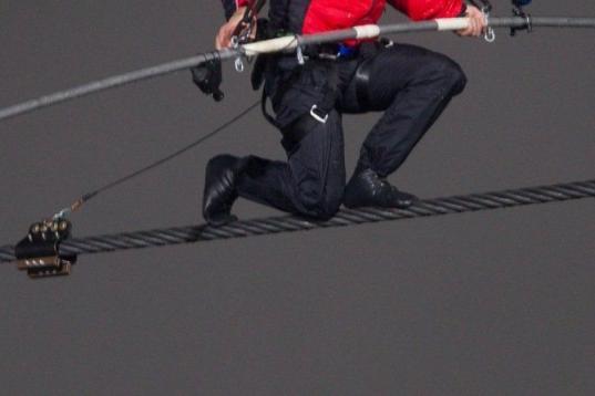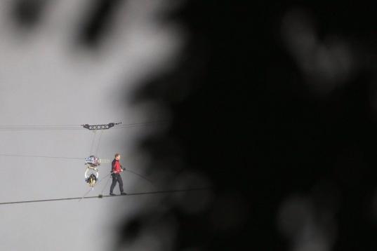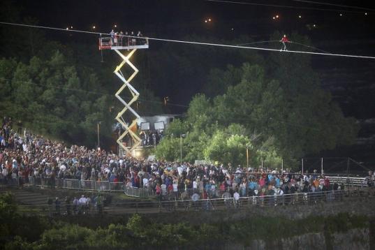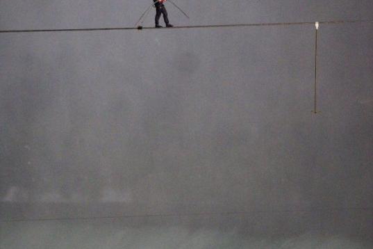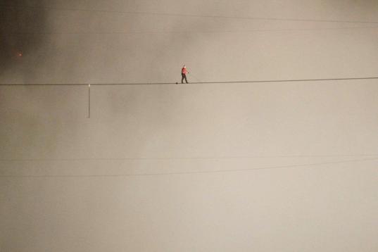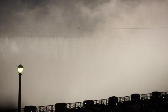 - Ha cruzado el Niágara por una parte más revuelta y complicada que sus antecesores por una cuerda de 550 metros de largo. Un paseo de 25 minutos que se desarrolló en parte en la oscuridad.