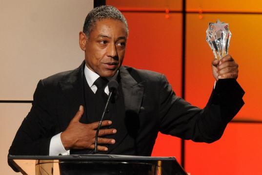 El actor Giancarlo Esposito agrede el premio ante los asistentes.