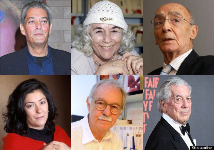 (Paul Auster, Carmen Martín Gaite, José Saramago, Almudena Grandes, Eduardo Mendoza y Mario Vargas Llosa, ganadores del premio)
