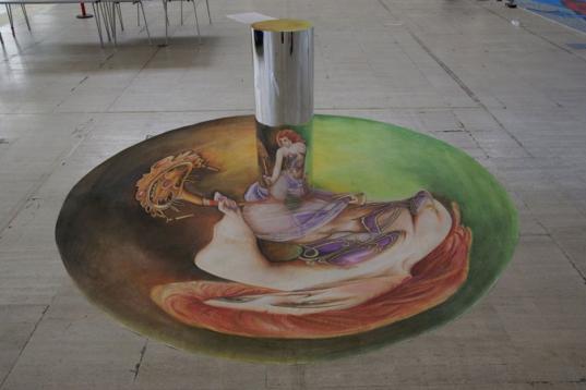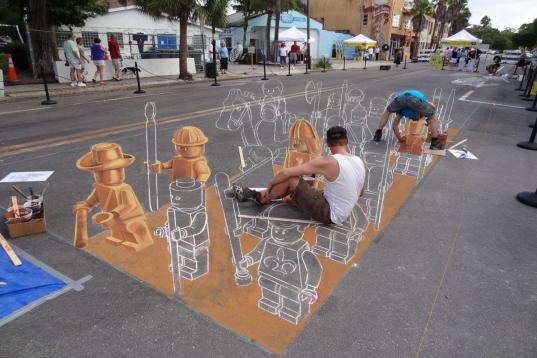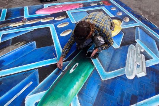 El dibujo final de Leon Keer en el festival de arte de la ciudad inglesa de Milton Keynes