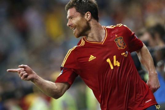 Xabi Alonso celebra su segundo gol.