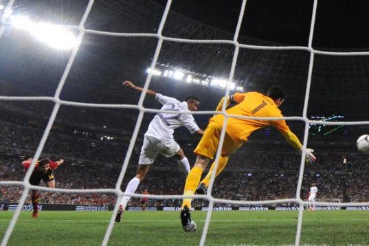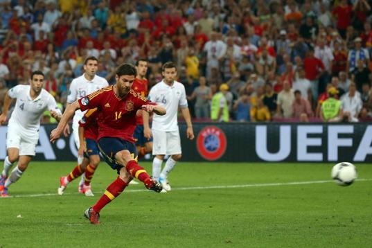 Xabi Alonso lanza el penalti que supondría el segundo gol de la selección.