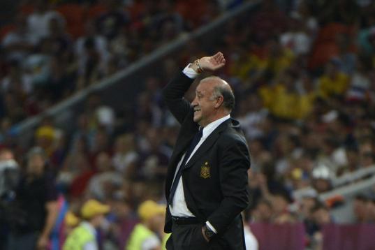 Del Bosque, seleccionador de España, da instrucciones a los jugadores.