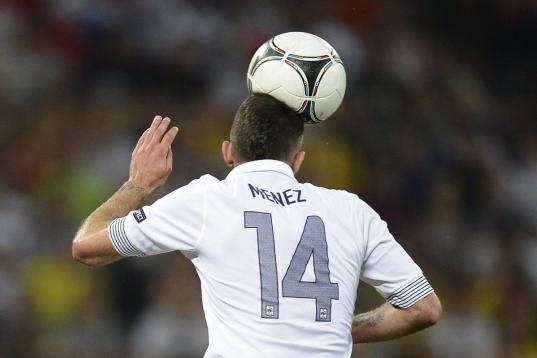 Menez golpea un balón con la cabeza.