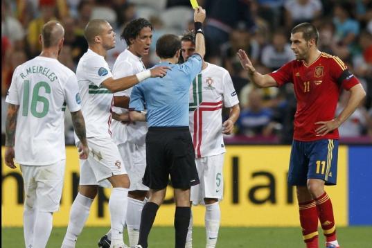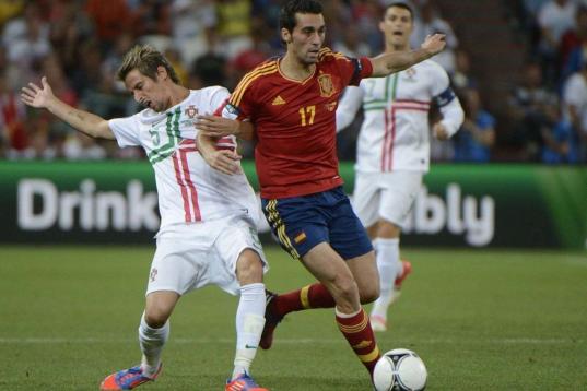 No fue un partido cómodo para España, castigada por el cansancio físico y la falta de ideas ante un rival que exigió mucho de inicio. Los portugueses adelantaron sus líneas para agobiar a los mediocentros españoles y no permitir una salida clara del balón. Algo debió de intuir Del Bosque, que alineó a Negredo en punta, temeroso del potencial luso en el juego aéreo y con la intención de buscar balones en largo.