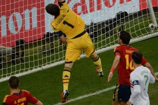 Tocaba ir a los penaltis. En el recuerdo, la tanda que clasificó a España frente a Italia en la Eurocopa de Austria y Suiza en 2008. Entonces fue Cesc el héroe y el destino le tenía preparado el mismo camino hoy. Antes, había que sufrir algo más. Xabi Alonso sorprendía fallando su tiro. Casillas resolvía las dudas despejando el de Moutinho. A cero. Luego llegaron los tantos de Iniesta, Pepe, Piqué y Nani. Empate a dos. Para el séptimo lanzamiento llegó Sergio Ramos, que se quitó los fantasmas del Bayern vistiéndose de Pirlo y marcando 'a lo Panenka'. Cambió el estado de ánimo: Bruno Alves acudió al punto de penalti como quien va a su ejecución, y falló. Entonces fue el momento de Cesc, quien volvió a clasificar a España desde los once metros cuatro años después.