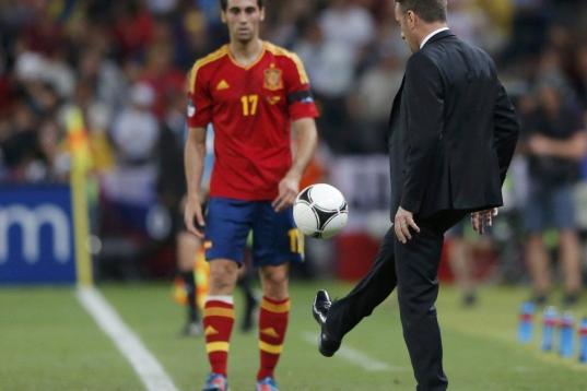 El segundo tiempo trajo consigo más de lo mismo. Por eso, muy pronto, Del Bosque ideó dos cambios fugaces: Cesc por Negredo y Navas por Silva. Agua. El extremo del Sevilla intentaba crear peligro por la derecha, pero Coentrao, irreconocible para cualquier aficionado del Real Madrid, le frenaba constantemente. Entonces, el seleccionador decidió que si no era por una banda, debía de ser por las dos e introdujo a Pedro a poco para terminar el partido.