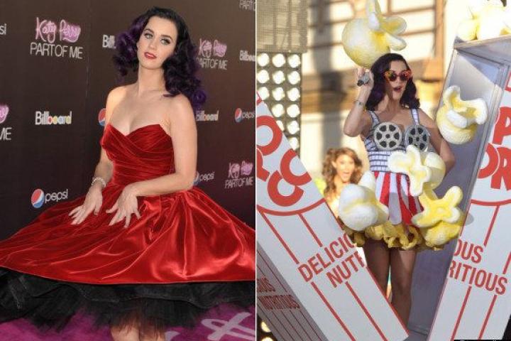 Katy Perry, de cine: vestido con palomitas gigantes para presentar su película en 3D (FOTOS)
