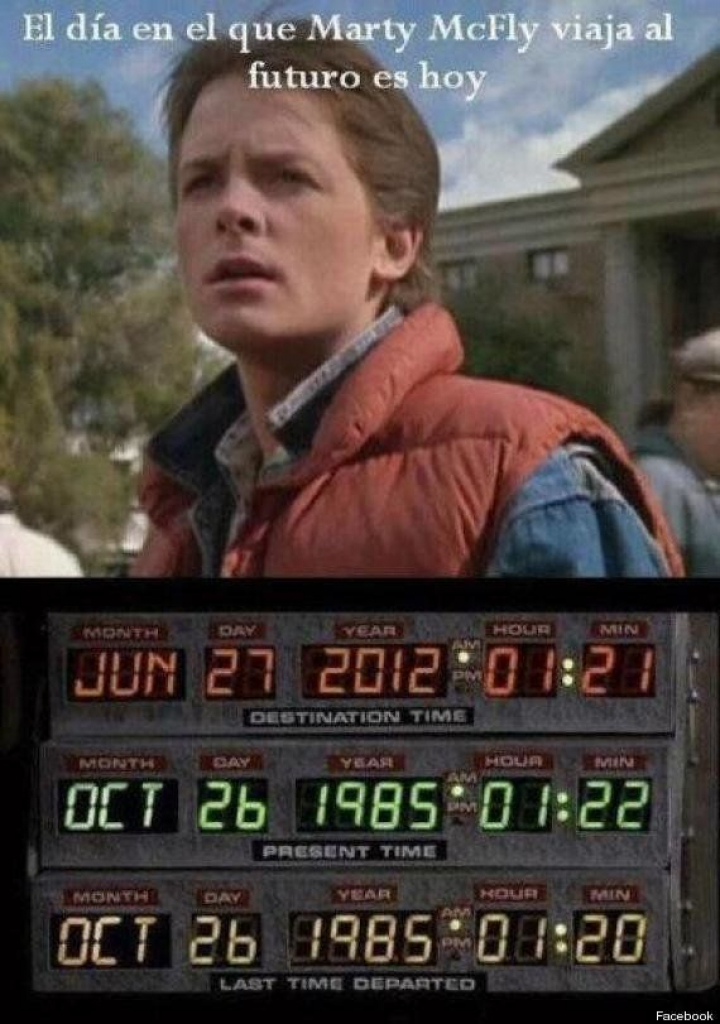 Si usted también se ha creído el bulo que estos días circula por Internet en forma de imagen, olvídelo. La fecha a la que viajaban Emmet 'Doc' Brown y Marty McFly en su DeLorean era el 21 de octubre de 2015 y no el 27 de junio de 2012, como indica el montaje, que ha causado furor en las redes sociales.