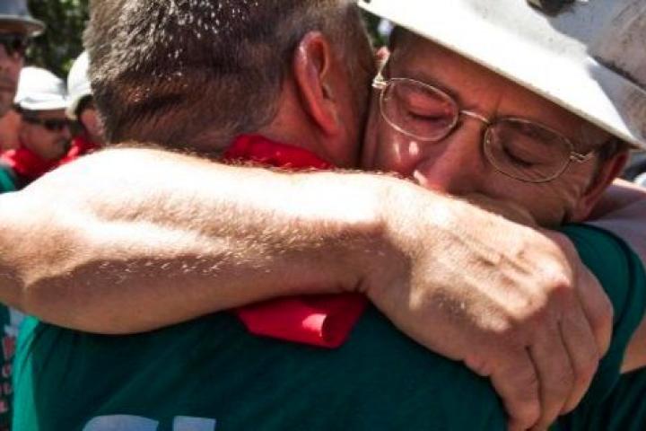 Algunos mineros, emocionados, arrancan a llorar mientras se funden en abrazos entre ellos. “Ha sido duro, muy muy duro ”, comenta García, “más allá de las ampollas en los pies, dejar a la familia atrás”. Antonio tiene mujer y dos hijos, de 10 y 14 años, a los que ha dejado en casa “para luchar y conseguir darles de comer”.
