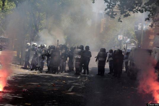 La policía ha reforzado la seguridad de la zona, poniendo hasta 12 camionetas blindadas delante del Congreso, y haciendo amagos de cargar contra los presentes.