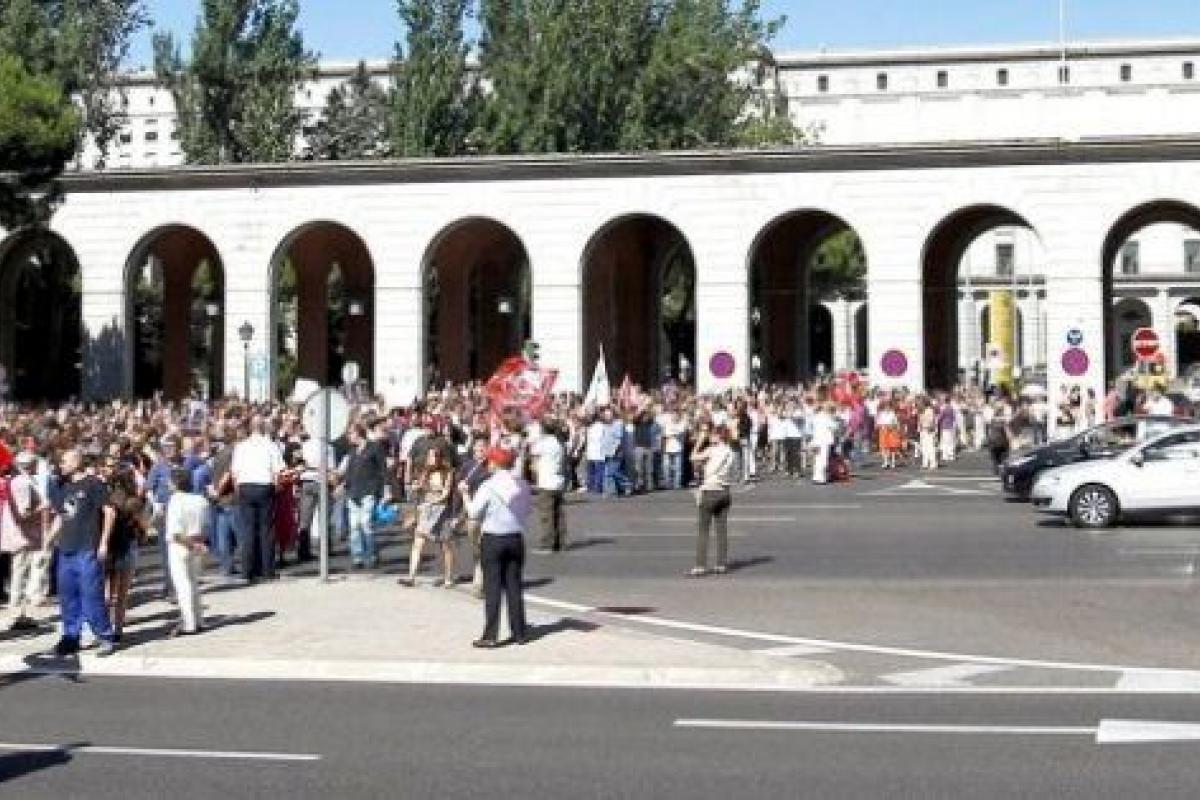 Empleados públicos de los distintos ministerios ubicados en Nuevos Ministerios han cortado, por segundo día consecutivo, parte de los carriles centrales del Paseo de la Castellana. Los funcionarios estaban convocados a las 11:00 horas en todos los edificios de las administraciones públicas. Unos 150 trabajadores se han dirigido a los carriles centrales de la Castellana interrumpiendo el tráfico.