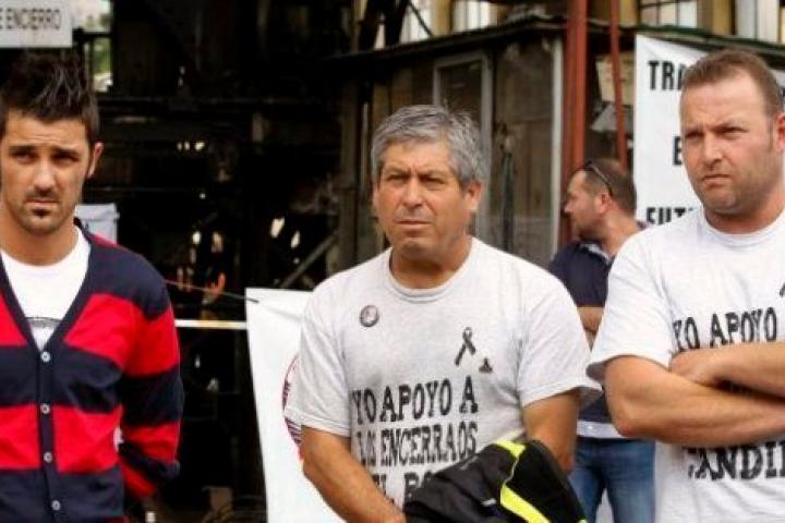 El futbolista del Barcelona David Villa apoya a los mineros encerrados en el pozo Candín