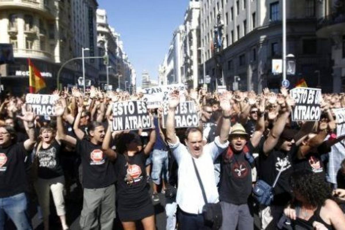 Al grito "Manos arriba, esto es un atraco", decenas de personas se han dirigido hacia el Congreso de los Diputados, donde quieren trasladar el malestar por el trato que se está dando a estos trabajadores. "Somos como cualquier otro ciudadano, y nos están machacando", ha señalado uno de los manifestantes.
