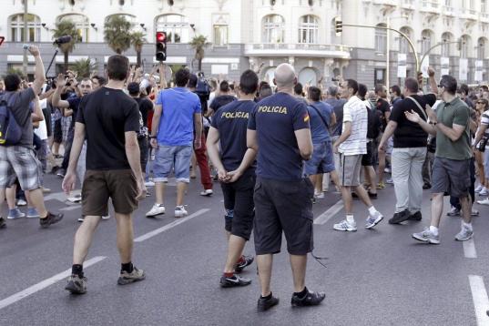 En la tarde-noche del domingo, miles de personas volvieron a concentrarse en los alrededores del Congreso contra los recortes. La manifestación de funcionarios públicos, desde médicos hasta bomberos y policías, que clamaban contra los recortes sociales del Ejecutivo de Mariano Rajoy por las calles de Madrid concluía de madrugada.