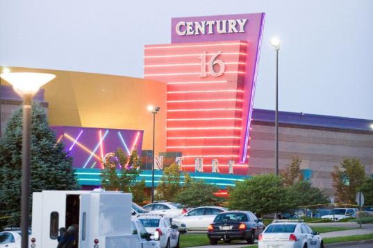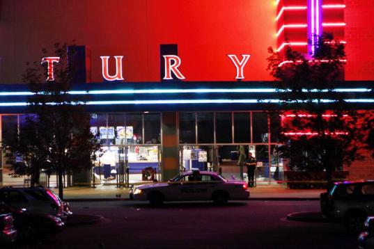 Police cars in front of the Century 16 theater in Aurora, Colorado where a gunman opened fire during the opening of the new Batman movie "The Dark Knight Rises" killing at least 15 people and wounding 50 others on the morning of July 20, 2012. ...