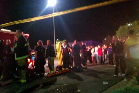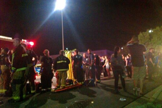 People gather outside the Century 16 movie theatre in Aurora, Colo., at the scene of a mass shooting early Friday morning, July 20, 2012. Police Chief Dan Oates says 12 people are dead following the shooting at the suburban Denver movie theater...