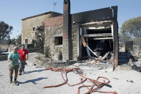 Estado en que ha quedado una casa, parcialmente quemada, en la localidad de Terrades