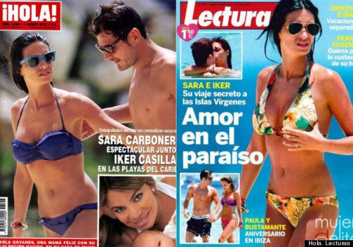Esta vez, la periodista aparece fotografiada con su novio, el portero Iker Casillas, en las islas Vírgenes, en el corazón del Caribe, tanto en ¡Hola! como en Lecturas. Van tres años. Echa un vistazo y vota tu año favorito de Sara Carbonero en biquini.