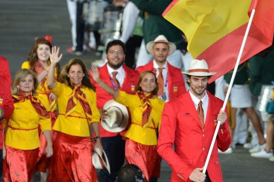 La delegación española con los polémicos trajes. Gasol muy guapo, pero con una corbata horrorosa.