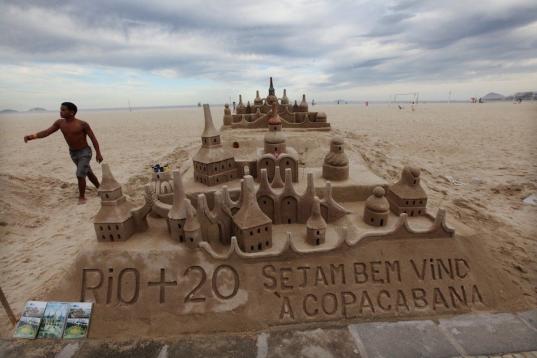 La playa de Copacabana albergó esta escultura realizada en honor de los asistentes a la cumbre Rio + 20, celebrada en Río de Janeiro (Brasil) el 22 de junio de 2012.