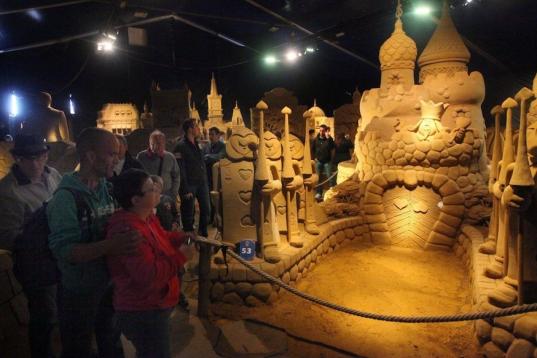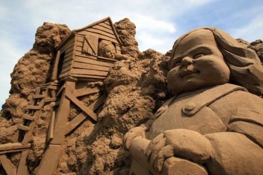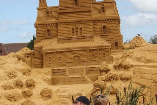 Trustas belgas observan esta casa del terror de arena, en el festival de esculturas de arena de Blankenberge (Bélgica), en julio de 2011. La temática giró en torno a los momentos mágicos de Disney.