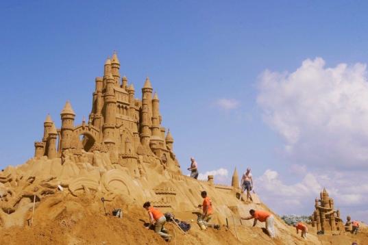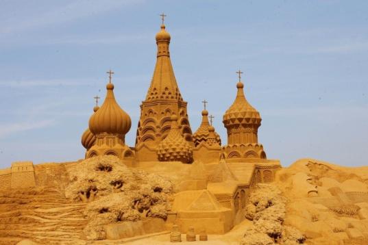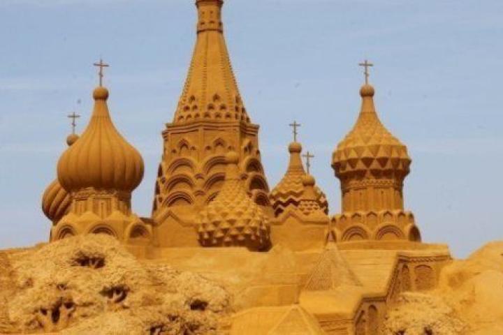 Un castillo de arena similar a la Plaza Roja de Moscú, en la edición de 2010 del festival de Blankenberge (Bélgica).
