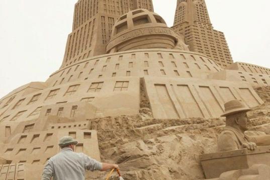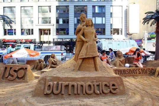 Esta escultura se hizo en la plaza Times Square de Nueva York con motivo de la presentación de la nueva temporada de Burn Notice.