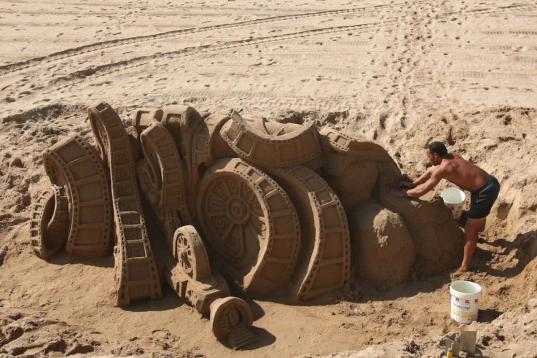Otra escultura relacionada con el mundo Disney en el festival de esculturas de arena de Blankenberge (Bélgica), en julio de 2011. Este es Rayo MacQueen, el protagonista de la película Cars.