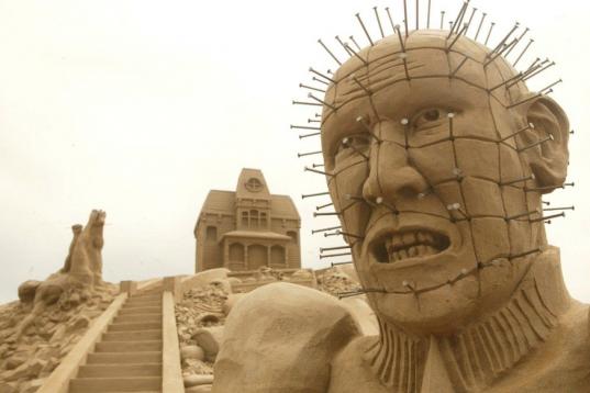 Una escultura emulando a Pinhead, de la película Hellraiser.