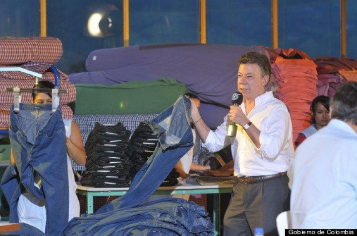 Juan Manuel Santos habla con El Huffington Post en el avión presidencial de las Fuerzas Aéreas colombianas que nos lleva de regreso a Bogotá desde Pereira, en el corazón de la zona cafetera. Es la séptima de las ciudades —quedan otras tantas— que el presidente y su comitiva de ministros y viceministros están recorriendo estos días en lo que han bautizado como “Vuelta a Colombia”; un tour para explicar al país los logros de sus dos primeros años de madato. Santos, sin corbata, con camisa blanca y micrófono en mano, se pasea por el escenario que han montado en un rincón de una empresa de confección, trasmutada en plató televisivo: un grupo de trabajadoras le dan a la máquina de coser como atrezzo. Y la comparación es irresistible: “Fíjense en España, un 25% de desempleo”, dice Santos, para luego exhibir que Colombia está a punto de bajar de los dos dígitos en tasa de paro. Cifra que a los españoles nos suena a música celestial, pero que aún es de las más altas de América Latina. Qué estamos haciendo mal en Europa, le pregunto.