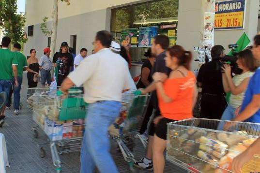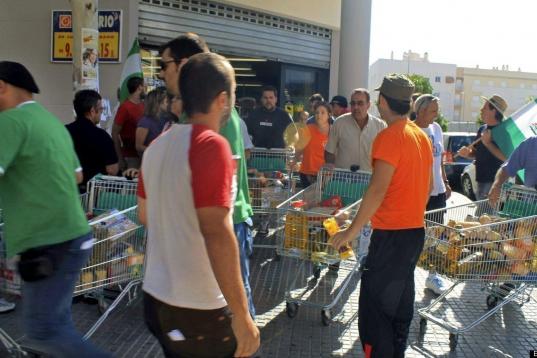Este martes dirigentes del SAT protagonizaron dos acciones sorpresa en Écija y en Arcos de la Frontera (Cádiz), donde han entrado en sendos hipermercados para cargar carros con alimentos y artículos de primera necesidad con la idea de llevárselos sin pagar y entregarlos a ONG, en concreto, los bancos de alimentos de la zona, a modo de una "expropiación de alimentos".