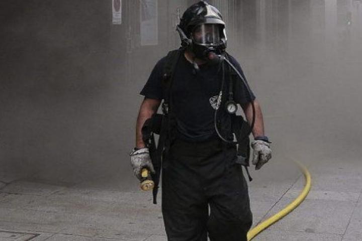 En la calle, los curiosos se han ido agrupando para ver lo que pasaba en el edificio ante la salida de humo negro, primero más tranquilos y luego mas alarmados.