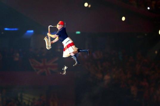 El actor británico Timothy Spall se presenta durante la Ceremonia de Clausura de los Juegos Olímpicos.