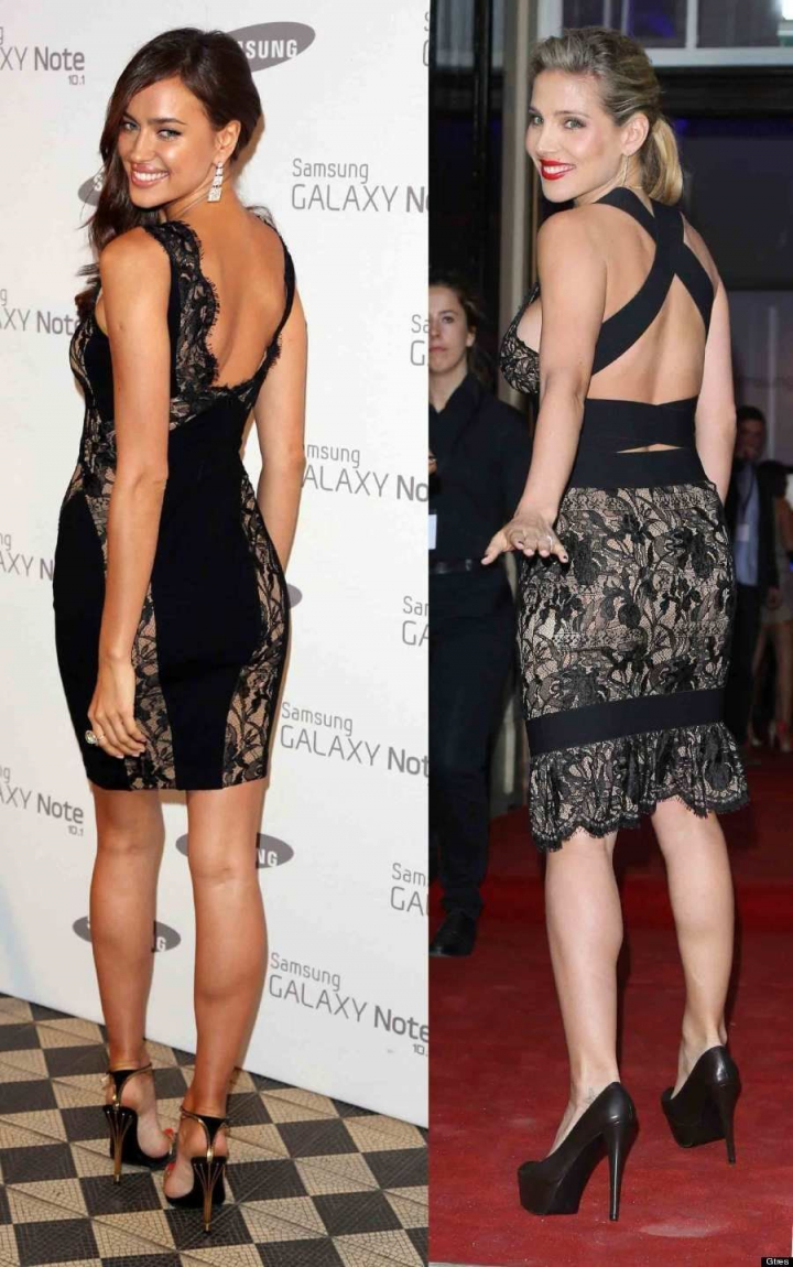 La actriz española Elsa Pataky y la modelo rusa Irina Shayk coincidieron ayer. Es decir, coincidieron en evento (la presentación del Samsung Galaxy Note 10.1 en Londres), vestido (modelos cortos de encaje negro) y pose (ambas son expertas en lanzar miradas a la cámara por encima de su espalda, lo que se ha acabado llamando de forma popular "hacer un pataky" en honor de la española).