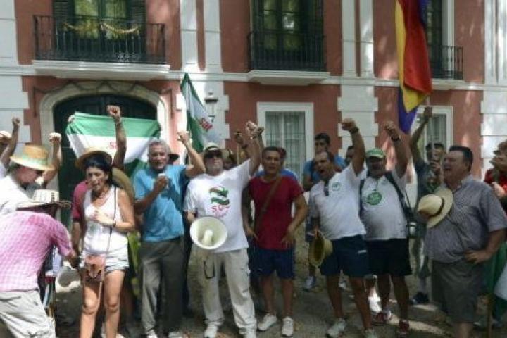 Por su parte, el portavoz del SAT, Diego Cañamero, ha explicado que tras la rehabilitación del edificio de la finca, "las empresas no han pagado a los trabajadores y no cumplen el convenio", además de "explotar a los inmigrantes". Asimismo, ha pedido a los integrantes de la marcha que no toquen "nada del palacio, porque no es nuestro", y la ocupación es "pacífica".