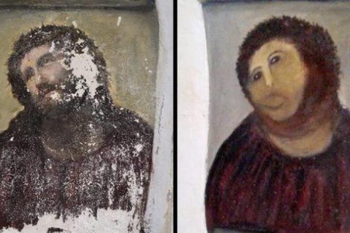 Ésta es la decisión que ha adoptado el Ayuntamiento de Borja después de que el párroco de la localidad, Florencio Garcés, propusiera tapar la "restauración" de esta pintura llevada a cabo por la vecina Cecilia Giménez, para evitar mofas.