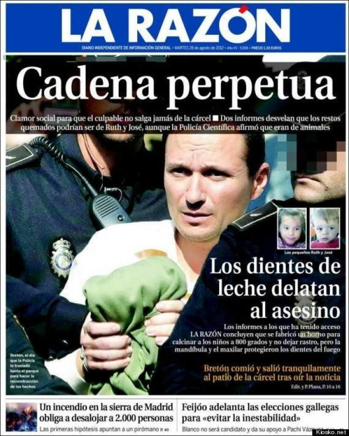 Las palabras de Gordillo llegan después de que La Razón titulase con las palabras "cadena perpetua" su portada de este martes con la fotografía de Bretón y de que ABC diese por hecho que "asesinó y quemó a sus hijos", lo que ha generado la indignación en Twitter, ya que muchos lo consideran una condena anticipada y sin juicio previo.