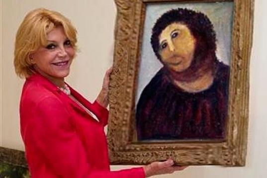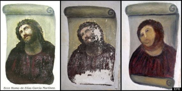 El "eccemono" no está solo. Tras la fama mundial alcanzada por la mala restauración del Ecce Homo de Borja, obra de Cecilia Giménez, un blog ha sacado a la luz el caso de otra restauración catastrófica en Aragón. El caso se ha dado en Sariñena (Huesca), en Monegros. ¿Ecce homo de Huesca? No, la intervención en la Cartuja de las Fuentes (bien de interés cultural) no se trata de una intervención en la cara de un Cristo. Esta vez las víctimas son un ángel y una virgen.