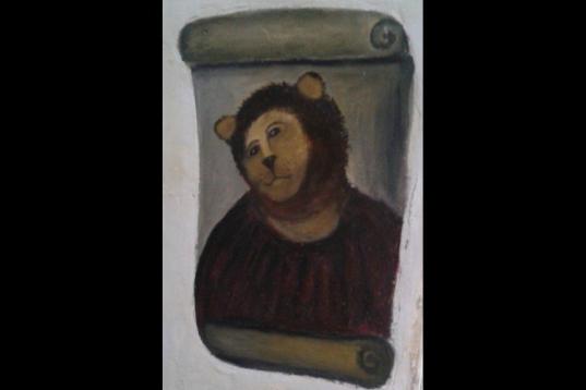 "Sencillamente tanta dejadez es un delito contra nuestro patrimonio y tan responsable son los propietarios como el Gobierno aragonés", añaden. Las imágenes de la pintora aficionada, que no se consideran una restauración al no afectar a las originales y que en las redes sociales fueron bautizadas ayer como "el eccehomo de los Monegros", fueron realizadas en una pared de la que colgaban 32 cuadros apaisados de Bayeu con escenas de la vida de San Bruno.